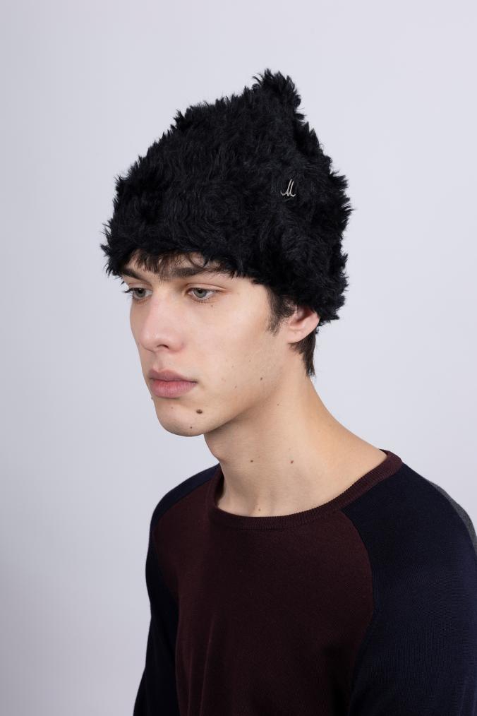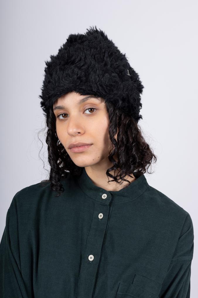 Das Mühlbauer-Modell Alpin ist eine Bommelmütze aus einem gelockten, besonders weichen Webfell aus Mohair. Das Webfell beziehen wir von der deutschen Stoffmanufaktur Steiff, bekannt durch die Teddybären und Kuscheltiere. Das Webfell ist auch ein Stück nach innen eingeschlagen, sodass die Kopfhaut damit in Berührung kommt. Das Modell trägt sich deshalb sehr angenehm und hält gut warm.