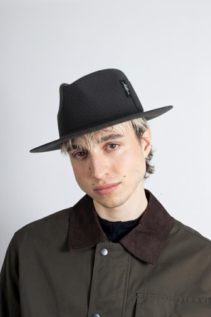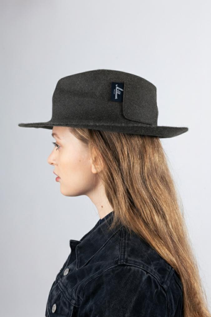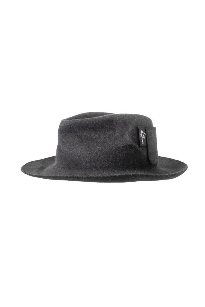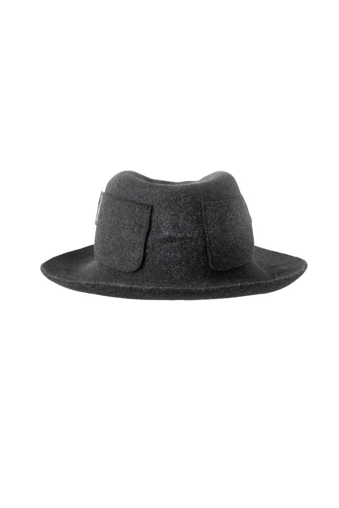 Das Mühlbauer-Modell Graf Udo ist eine leicht geknautschte Herrenfasson aus Haarfilz, einer der besten Filzqualitäten aus 100% Hasenhaar. Der Hut ist auf besondere Weise „garniert“, wie man in der Fachsprache zu dekorieren sagt, und folgt damit dem Kollektionsthema „Garnish“. Wie Po-Taschen von Jeans sind zwei Filztaschen auf die Hinterseite des Hutes genäht und verleihen dem Modell eine Cargo-Optik. Neu an dem Modell ist auch, dass statt der M-Nadel eine Textiletikette mit Logo für das Branding sorgt.