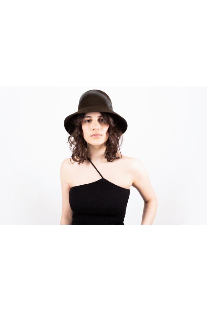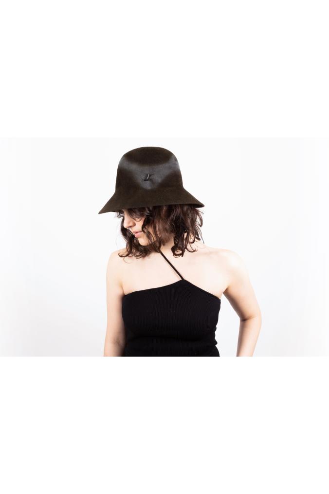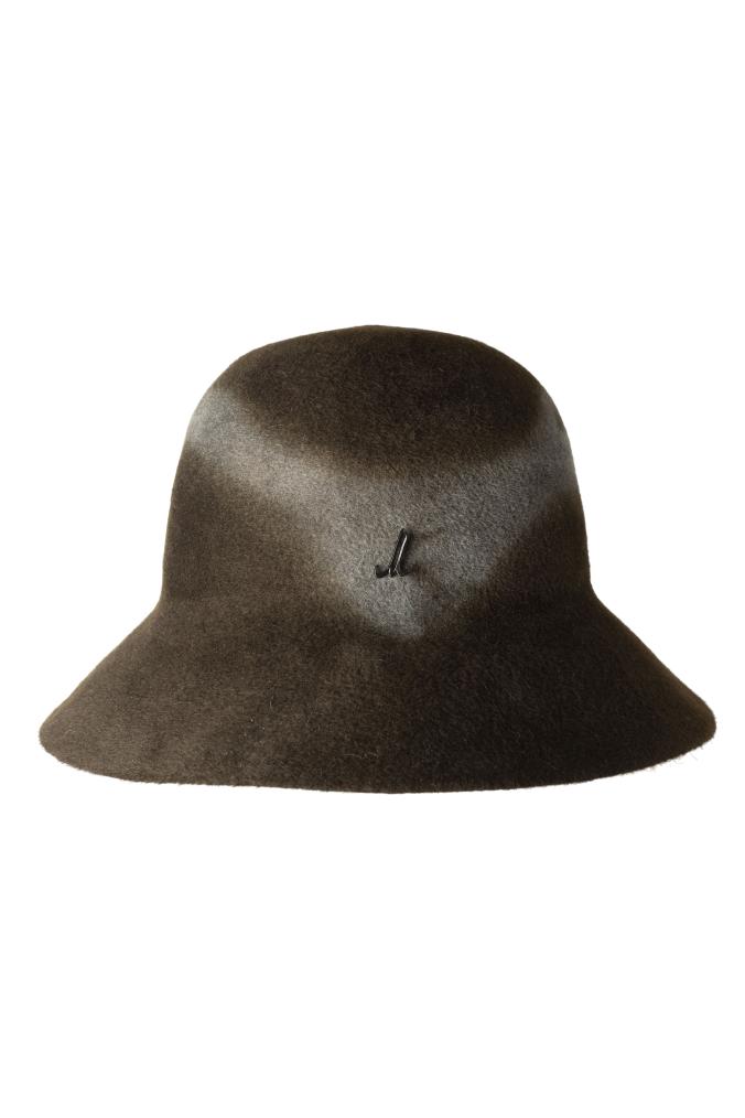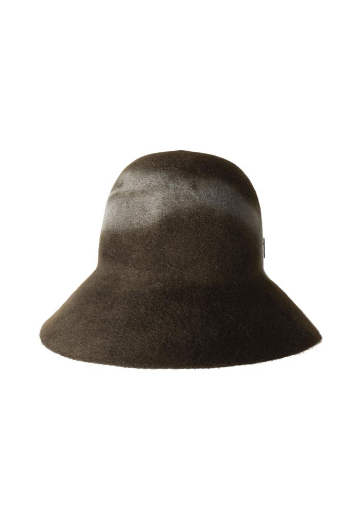Das Mühlbauer-Modell Duke Lia ist eine Cloche (Glockenform) aus Veloursfilz. Samtveloursfilz besteht aus 100% Hasenhaar und zählt zu den besten verfügbaren Filzqualitäten. Den für ihn typischen samtigen Charakter erhält der Veloursfilz durch den gleichmäßigen Beschnitt der Filzhaare. Wie eine Schliere zieht sich ein handgebleichter Streifen über den Hut. Dieser Streifen und die vage Form des Modells verleihen dem Kollektionsthema „Blob“ Ausdruck, in dem es um freie, fließende Formen und das Gestaltlose geht. Der Krempenrand des Hutes ist maschinell gerissen und nicht geschnitten, das sorgt für eine weiche Kante.